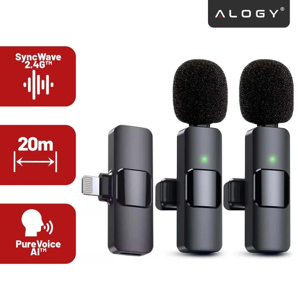 2x Alogy kabelloses Lavaliermikrofon für Apple iPhone, iPad, kleine Mikrofone, Set bestehend aus zwei Mikrofonen