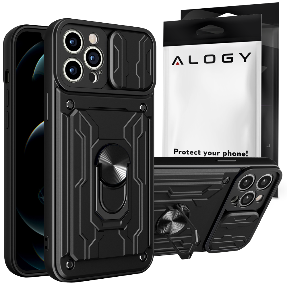 Die gepanzerte Alogy Camshield Stand Ring Wallet absorbiert den Aufprall unerwarteter Stürze und schützt die empfindlichsten Teile Ihres Telefons.