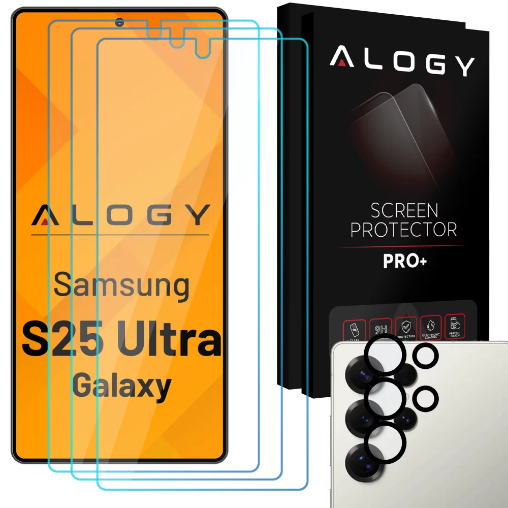 3x Alogy gehärtetes Glas für den Bildschirm + Glas für die Linse