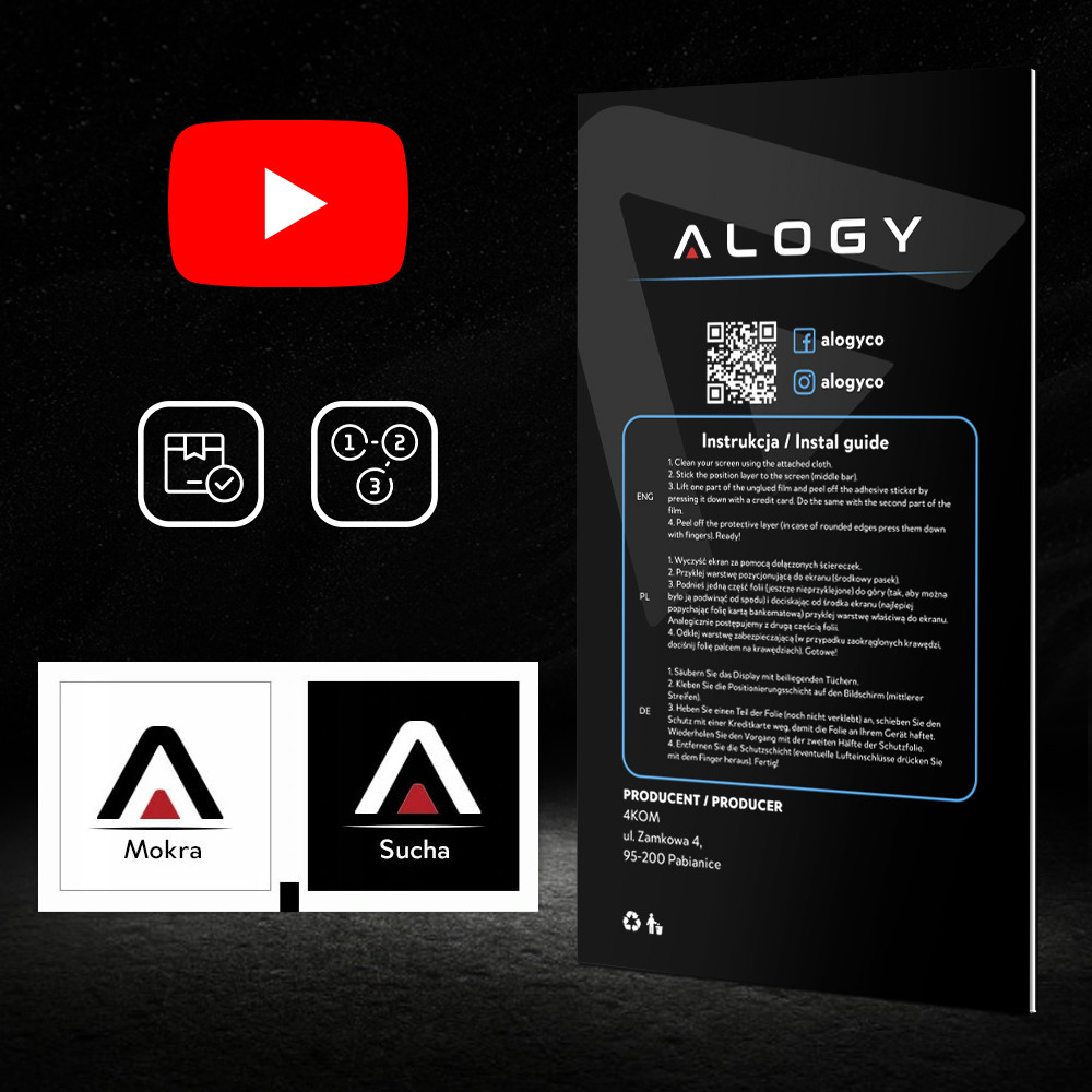 - Im Set finden Sie: 1x Alogy-Folie, Feuchttuch, Trockentuch, Staubentfernungsaufkleber
