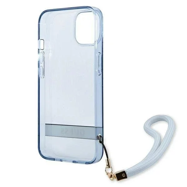 Ein transparentes Gehäuse mit aufgedrucktem Guess-Logo unterstreicht das Prestige Ihres Geräts, und das Ganze wird durch eine praktische Trageschlaufe ergänzt, wodurch eine ausgewogene Kombination aus ikonischen GUESS-Elementen entsteht.