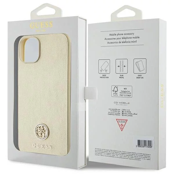 Etui Guess GUHCP15MPS4DGPD für iPhone 15 Plus 6,7" Hardcase Strass Metall Logo Gold/Gold