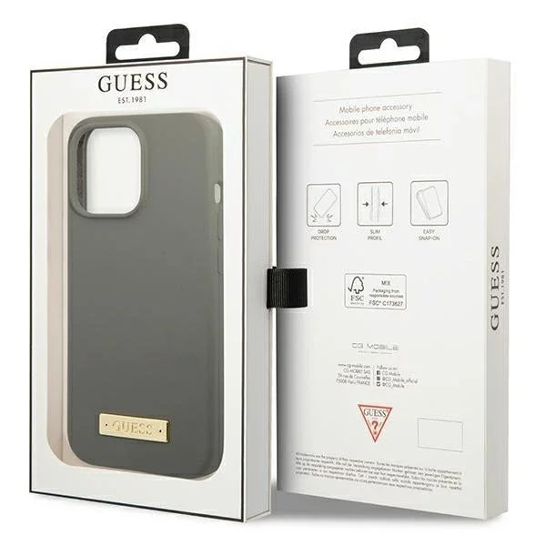 Modische und stilvolle Guess-Hülle aus der fesselnden, minimalistischen Kollektion von Silicone Logo Plate MagSafe.