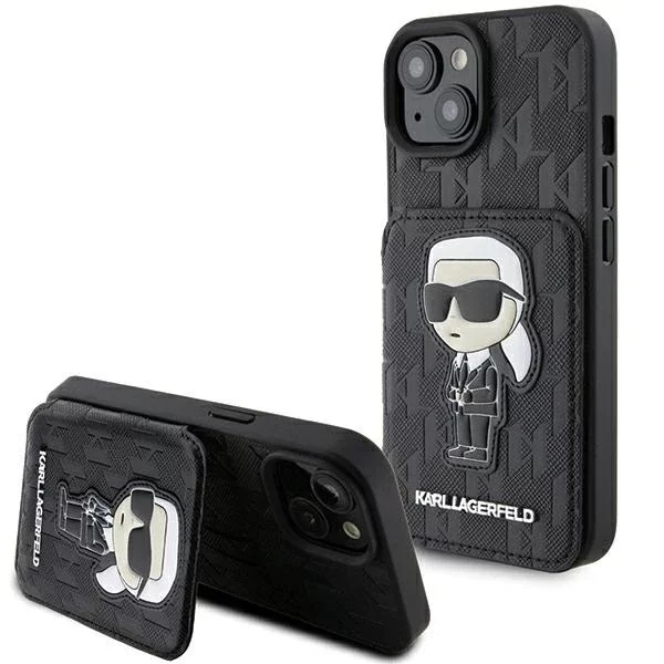 Etui Karl Lagerfeld KLHCP15SSAKKNSCK für iPhone 15 6,1" czarny/black hardcase Saffiano Cardslots und Stand Monogram Ikonik Patch