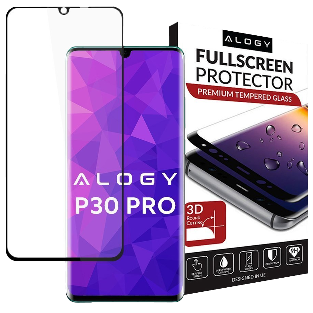 Das dem Huawei P30 Pro gewidmete gehärtete Alogy-Glas wurde entwickelt, um den größtmöglichen Bereich des Gerätebildschirms abzudecken.