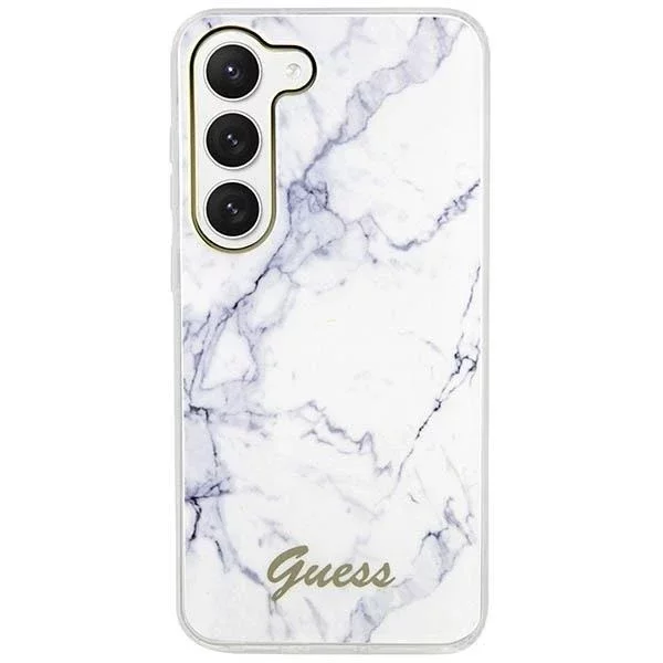 Guess GUHCS23SPCUMAH Hülle für Samsung Galaxy S23 S911 weiß/weiß Hardcase Marble