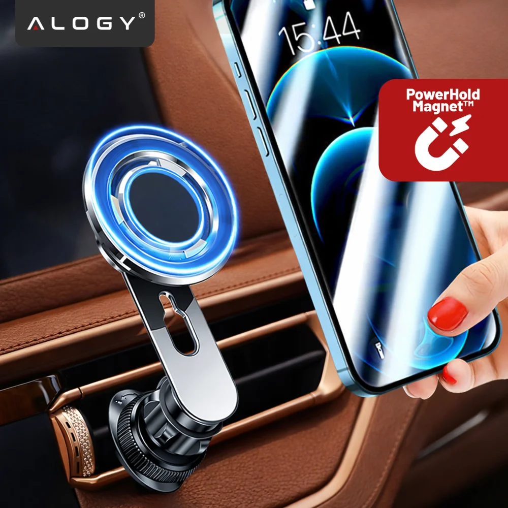 Magnetische Autohalterung für Apple-Geräte mit integrierter MagSafe-Technologie und für alle anderen Geräte nach vorheriger Installation eines Magnetrings oder einer Magnethülle .