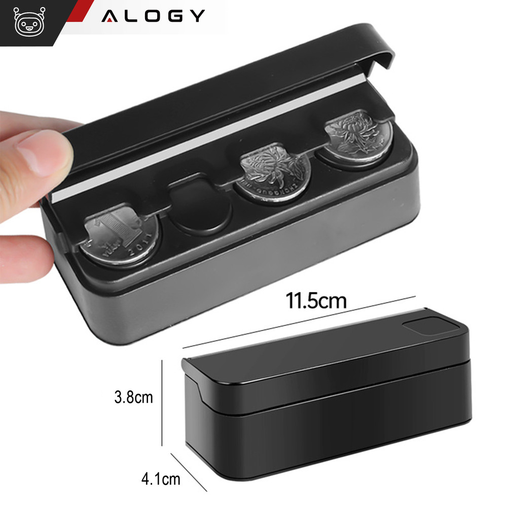 Münzbetriebener Auto-Organizerzeichnet sich durch folgende Maße aus: 11,5 cm lang, 4,1 cm breit und 3,8 cm hoch.