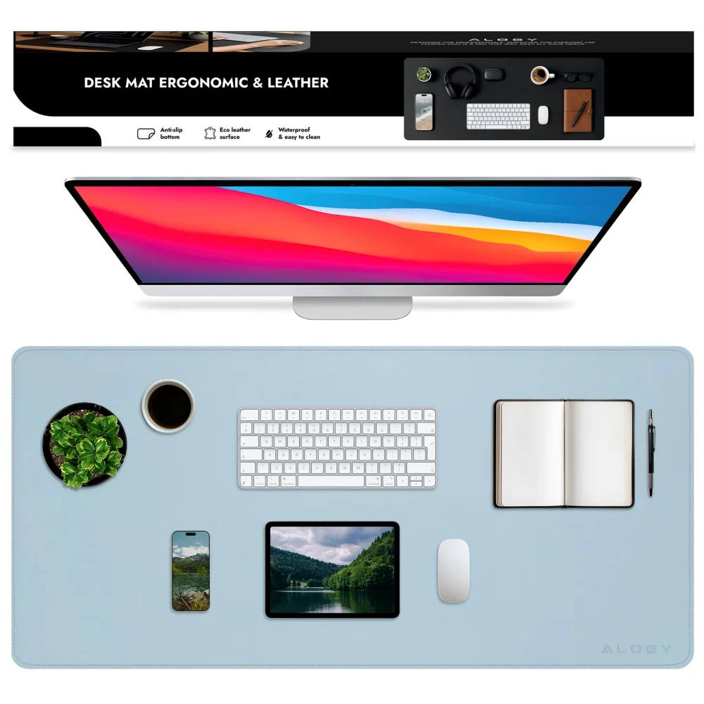 ▶️ Schreibtischunterlage 100x50 cm Alogy WorkMat™ PU-Leder Blau - Immer eine saubere und ästhetische Tischplatte!