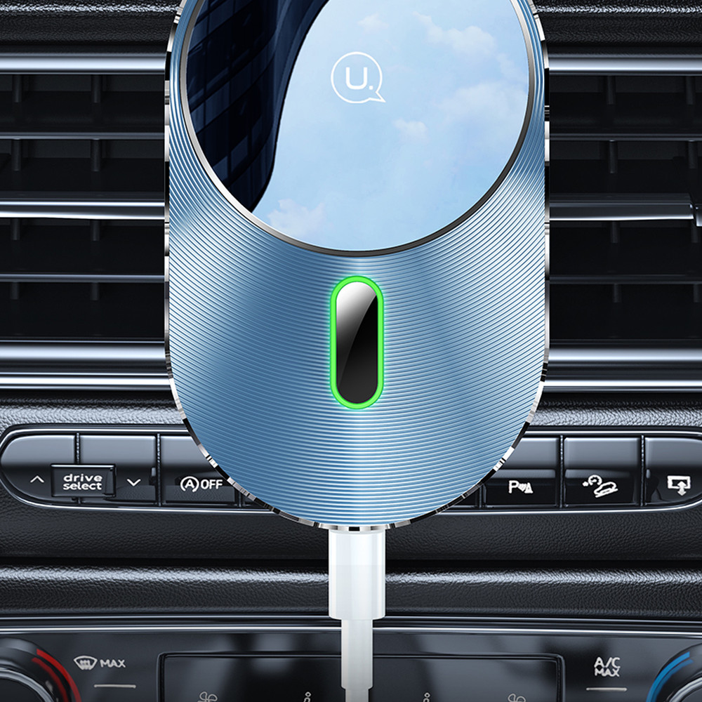 Die innovative USAMS US-CD170 Autohalterung mit einem induktiven Ladegerät, das mit einem 15-W-Magneten ausgestattet ist.