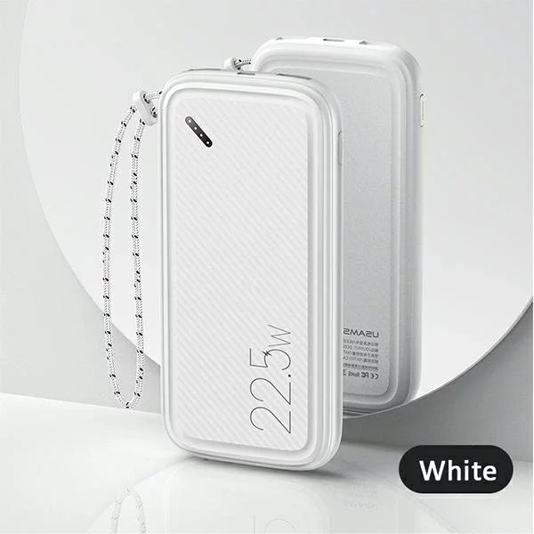 Usams US-CD151 PB56, eine Hochleistungs-Powerbank mit bis zu 10.000 mAh, die PD3.0 QC3.0-Schnellladung unterstützt. Die Powerbank wurde angepasst, um bis zu drei Geräte gleichzeitig frei aufzuladen. Das Gerät ist mit zwei USB-Schnellladeanschlüssen sowie einem USB-C- und MicroUSB-Anschluss ausgestattet. Die eingebaute LED-Anzeige informiert Sie über die Energiekapazität Ihrer Powerbank.