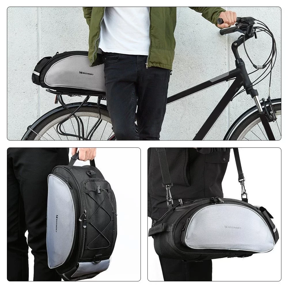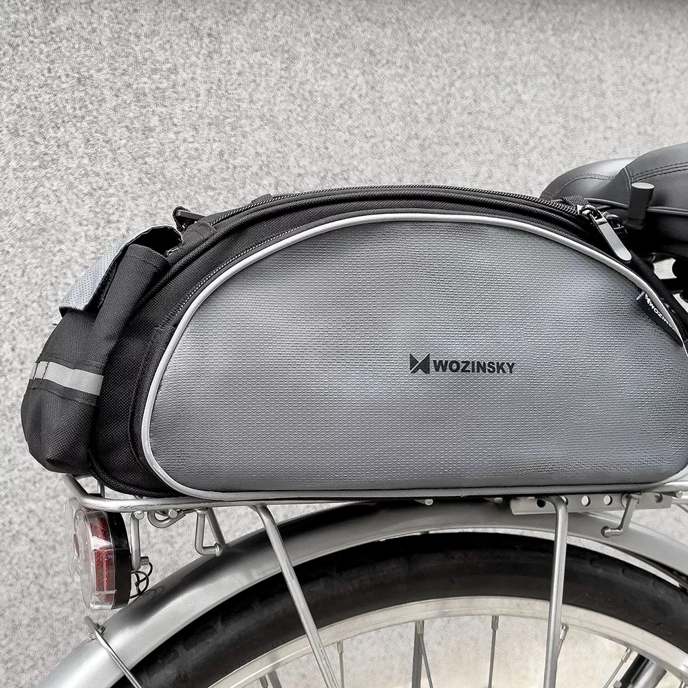 Multifunktional, angenehm zu tragen, geräumig – das ist die Fahrradträgertasche von Wozinsky. WBB1BK ist ein Modell für alle, die die Stadt gerne mit dem Fahrrad erkunden. Die Tasche hat einen langen Riemen, der es sehr bequem macht, die Tasche über der Schulter zu tragen . Die Kofferraumtasche hat ein Fassungsvermögen von bis zu 13 Litern und bietet somit Platz für die Dinge, die Sie für einen Wochenendausflug benötigen . Darüber hinaus ist die Fahrradtasche wasserabweisend, langlebig und nachts sichtbar – dank der reflektierenden Oberfläche.